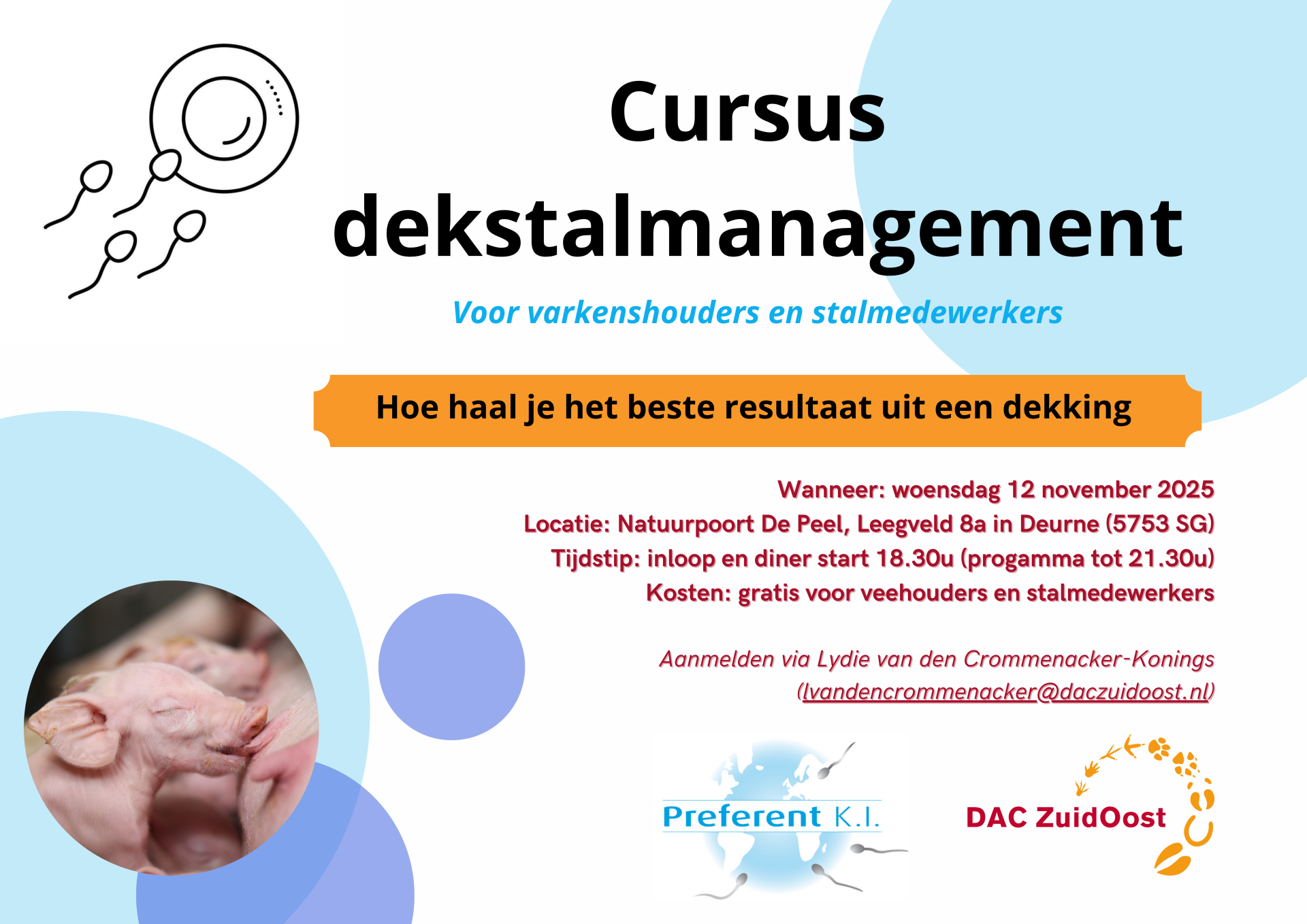 Op woensdag 2 juli organiseren wij samen met Preferent KI een cursus dekstalmanagement. Helaas zit deze cursus vol, maar bij voldoende animo geven we de cursus in het najaar nog eens. Hebt u interesse? Neem dan contact op met Lydie van den Crommenacker-Konings (lvandencrommenacker@daczuidoost.nl).